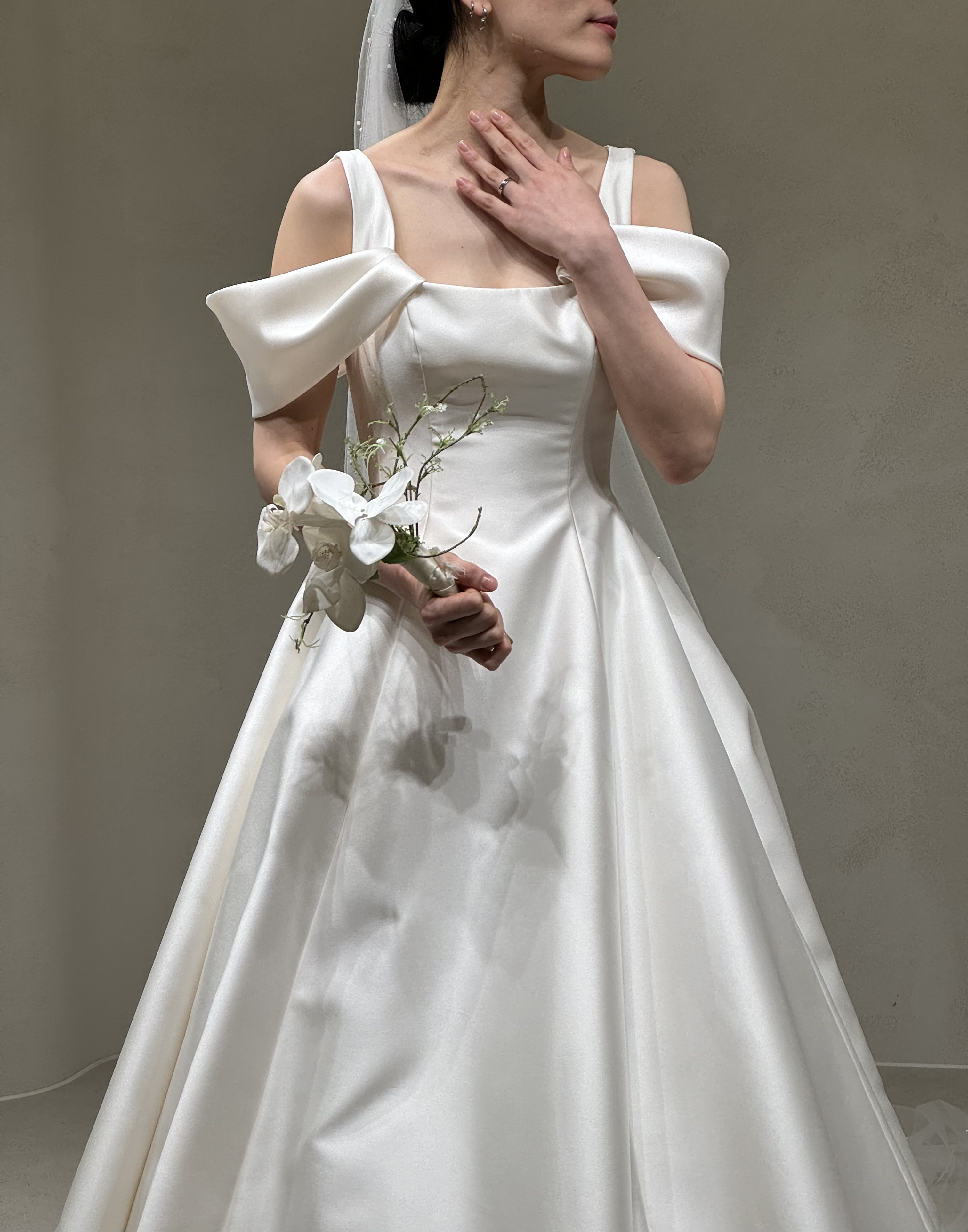- A라인 + 로우번 + 긴 베일 → 클래식 무드