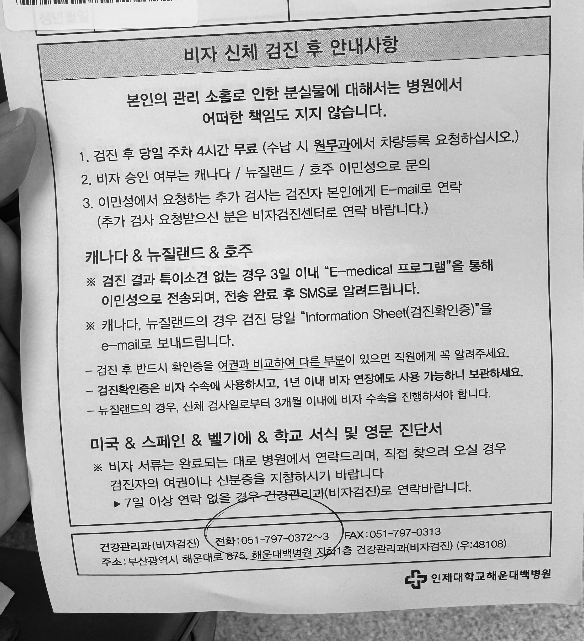 해운대백병원 비자검진 후기|비용,예약방법,소요기간 등 스페인이민 필수 준비