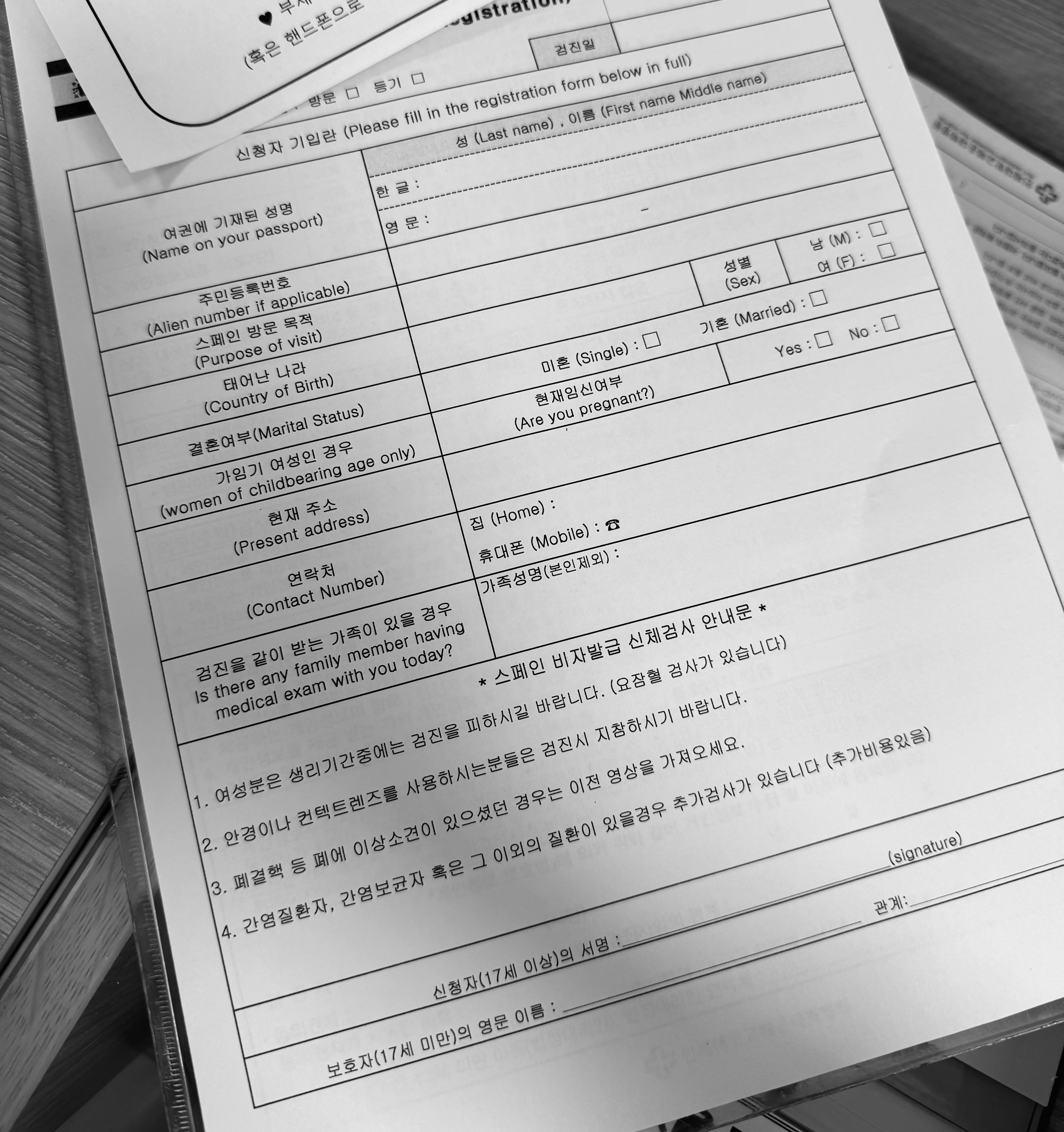 • 비자 검진 신청서(없으면 당일 작성 가능)